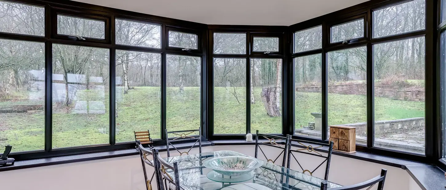 Double doors lead into the impressive conservatory, designed in a double-fronted style that maximises light and outlook. With panoramic aspects to both front and rear, it offers a seamless connection to the landscape and truly brings the outside in.